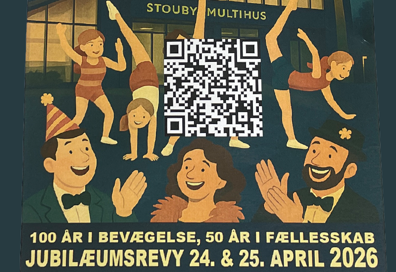Det er ikke hvert år, at der er revy i Stouby, for det er et stort og ressourcekrævende arbejde. I april 2026 skal Stouby imidlertid fejre ikke mindre end to flotte jubilæer samtidigt - og det kalder på en revy! Stouby GIF fylder 100 år - og Stouby Multihus fylder 50 år.